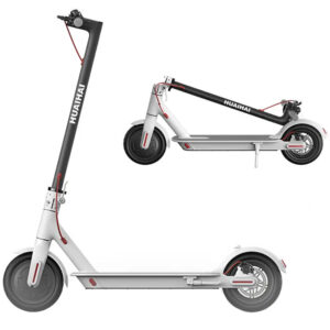 Trottinette Électrique Huaihai H851 – Puissance du moteur : 250W – Vitesse maximale : 25 km/h – Batterie aux ions lithium – Autonomie : Jusqu’à 30 Km – Temps de charge : 5,5 heures – Charge maximale : 42 V CC – Température de charge : 0°C~+40°C – Max. charger : 100 kg – Pneus : 8,5″ avant et arrière – Sous-tension du contrôleur : 29V0,5V – IP54 – Poids : 12,5 kg – Couleur : Blanc – Garantie : 1 an