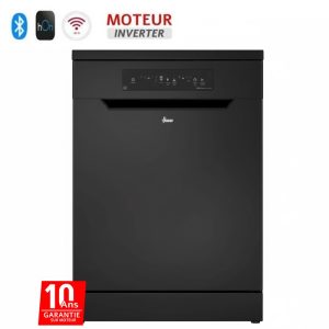 Lave vaisselle Inverter HOOVER – Capacité de laver: 13 Couverts – Classe énergétique: C l’équivalent de A+++ en TUNSIE – Nombre de Programme: 5 programmes – Débit Sonore: 41db – Connectivité: Wifi/Bluetooth – Application: hOn – Panneau de commande LED – Cycles rapides – Dimensions: L x H x P: 597 x 818 x 598 mm – Couleur: Noir – Garantie: 2 ans + 10 ans sur moteur