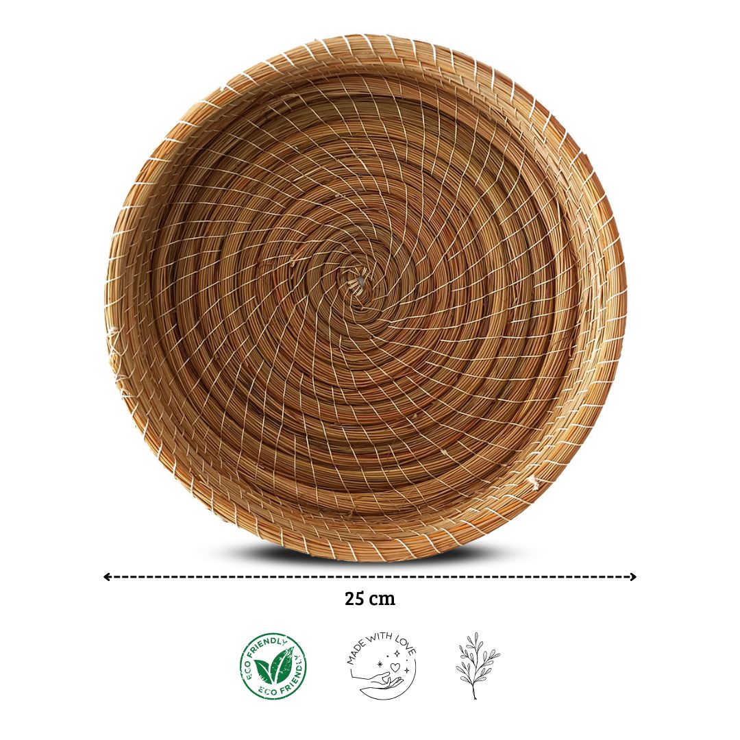 Plateau Halfa 25 cm Couleur Marron – Élégance Artisanale et Sobriété Naturelle.