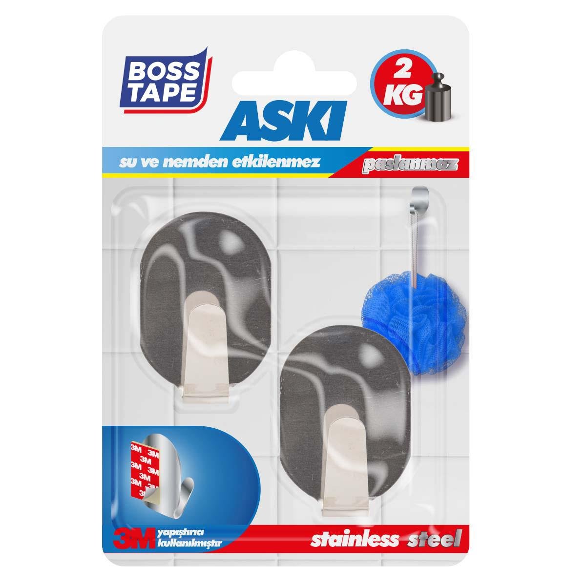 BOSS TAPE Crochet Mural auto adhésif inox sans percer de trous (2pcs)