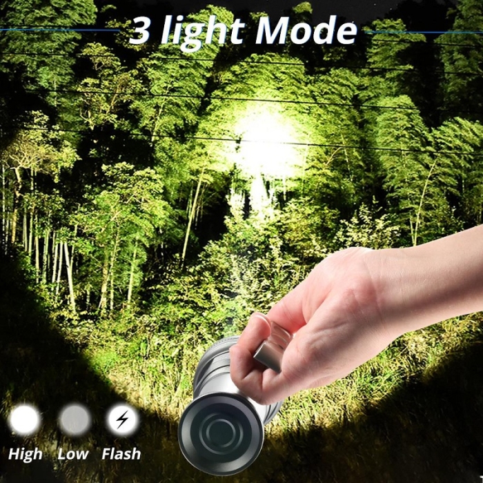 Lampe Torche LED Rechargeable Super Lumineuse En Alliage D’aluminium Avec 3 Modes D’éclairage