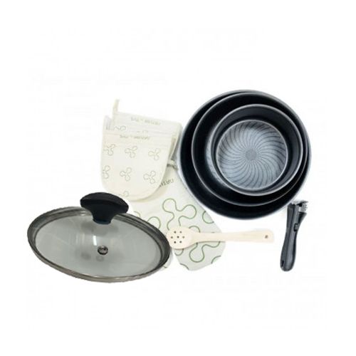 Combi Pro Induction TVS – Nombre de pièces: 8 pièces – 2x Poêle: 24cm / 28cm – 1x Casserole: 18cm – Manche amovible – Gant de cuisine – 2x maniques – 1x cuillère en bois – Couvercle – Revêtement: ipertek pro – Résistance aux rayures – Qualité antiadhésive et nettoyage plus facile – Couleur: Noir