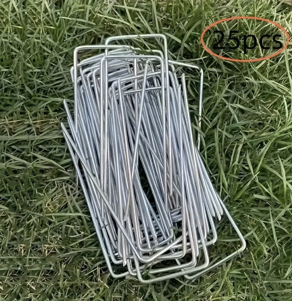 Lot de 25pièces Piquets de jardin en métal courbé en forme de U robuste avec clips – Idéal pour fixer les succulentes, les tuyaux d’arrosage et les décorations de vacances – Utilisation durable en extérieur, fournitures de jardin, piquets de tente, outils de camping