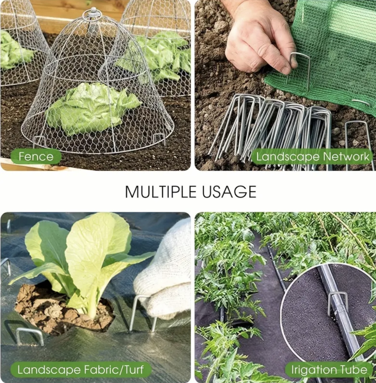 Acier inoxydable durable, Fixation sécurisée de pelouse et paysage, Idéal pour les lits de fleurs et les lits surélevés, Accessoires de soutien des plantes extérieures faciles à utiliser, Piquets de jardin extérieurs|Piquets en forme de U|Construction durable, Piquets de jardin pour le soutien des plante