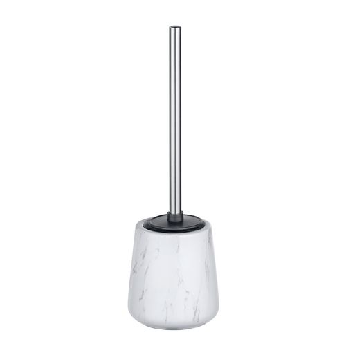 Porte-brosse WC ouvert moderne, idéal pour la salle de bain et le WC d’invités En céramique haut de gamme Aspect marbre tendance Brosse en silicone hygiénique avec effet antiadhésif et tête rempla?able noire de 7,5 cm Brosse WC autonettoyante, les résidus sont tout simplement évacués