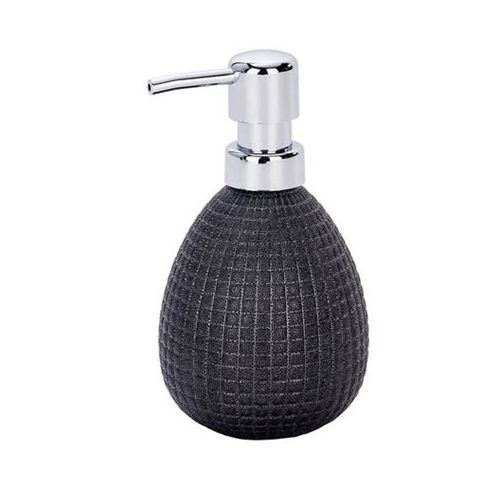 Distributeur de savon rechargeable pour une distribution dosée de savon liquide ou de lotion En céramique haut de gamme combinée à un distributeur en plastique/chrome Couleur : anthracite brillant structuré Capacité 390 ml env. Dimensions (L x H x P) : 10 x 16,5 x 9,4 cm