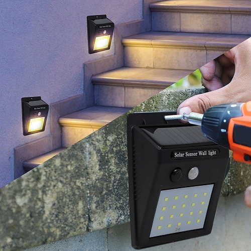 Lampe d’éclairage LED à énergie solaire, s’allume par le détecteur de mouvement. Très pratique pour une utilisation à l’extérieur ou à l’intérieur de la maison.