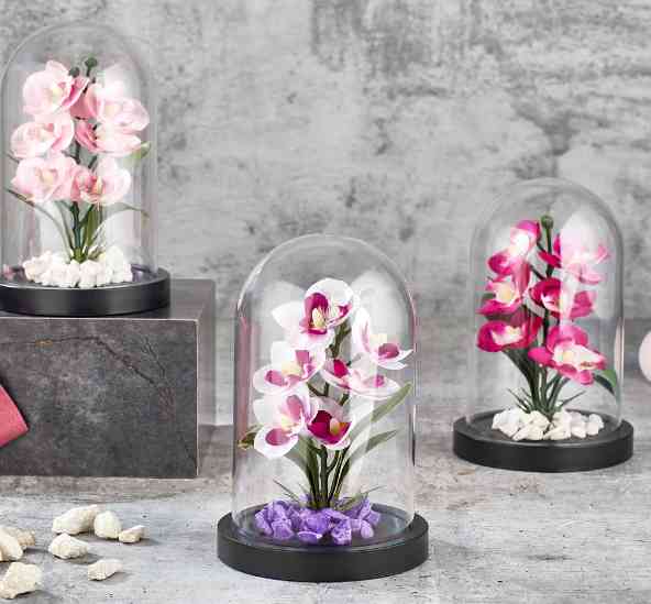 Fleurs artificielles en cloche lumineux, de style fleur éternelle.
