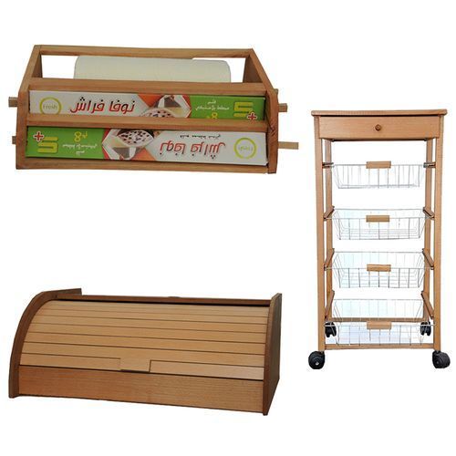 Pack 3 pièces en bois Porte légumes + Boite à pain + Distributeur de papiers