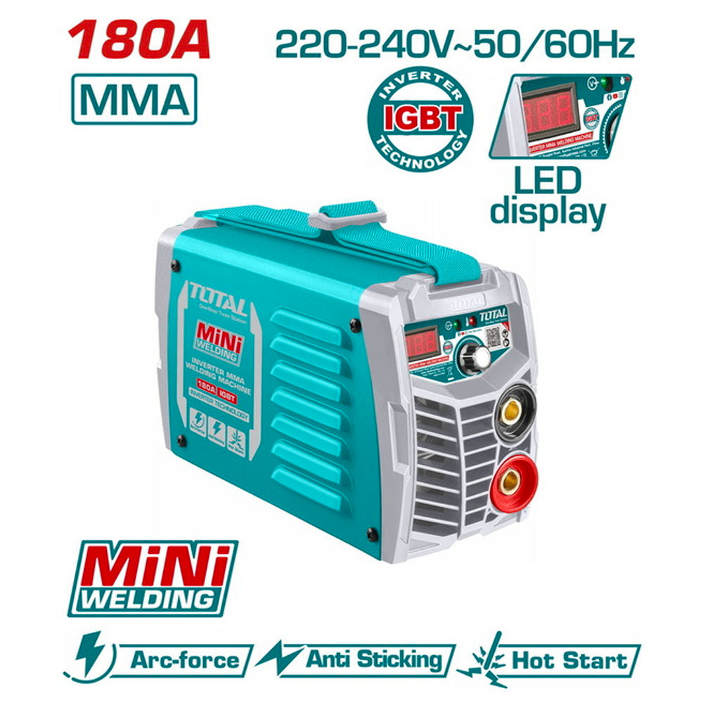Le poste à souder TOTAL 180A est une machine puissante et portable, équipée de la technologie IGBT pour des performances de soudage supérieures et une efficacité énergétique optimale. Parfait pour les travaux exigeants, il offre une grande précision et fiabilité. Caractéristiques principales : Technologie avancée : Dot