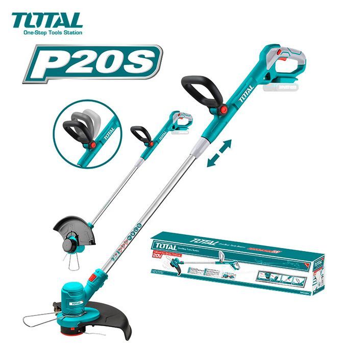 Coupe-herbe électrique TOTAL fonction coupe bordure télescopique lithium-ion + batterie 20 V + chargeur – TGTLI20301 Outil de jardin pratique, léger, économique et polyvalent utilisé principalement pour la finition des chemins et des bordures de pelouse, pour couper la moindre des herbes, au sol ou à la verticale, ou b