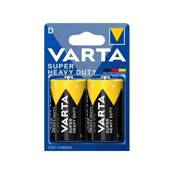 Pack 2 Piles LR20 de la marque VARTA. LA gamme super life est une gamme caractérisée par une durée de vie très longues comparée aux piles ordinaires. Pile de type D 1.5volt . NB : Ideal pour tous type de chauffe bain . Format de piles D Pile Saline (Zn/Ca) Tension 1.5 Volt Pour tous type de chauffe bain . Marque varta