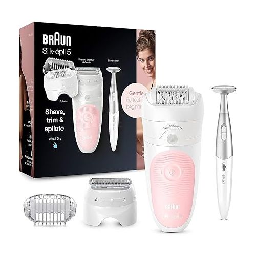 Épilateur Braun Rechargeable Série 5 SES5-820 Wet & Dry – Épilation ultra douce – Technologie Micro-Grip de 28 pincettes – Alimentation: 1 heure de charge pour 30 miniute d’autonomie – 2 réglage de vitesse – 100% étanche – Mouvements doux – Fonction Sensosmart qui adapte à toutes les courbes de votre corps pour une épilation efficace, même sur les zones difficiles d’accès telles que les genoux et les aisselles – Accessoire: Tête de rasage – Tête de tondeuse – Câble intelligent – Pochette – Accessoire tondeuse – Accessoire de contact avec la peau – Brosse de nettoyage – Couleur: Rose – Garantie: 2 ans