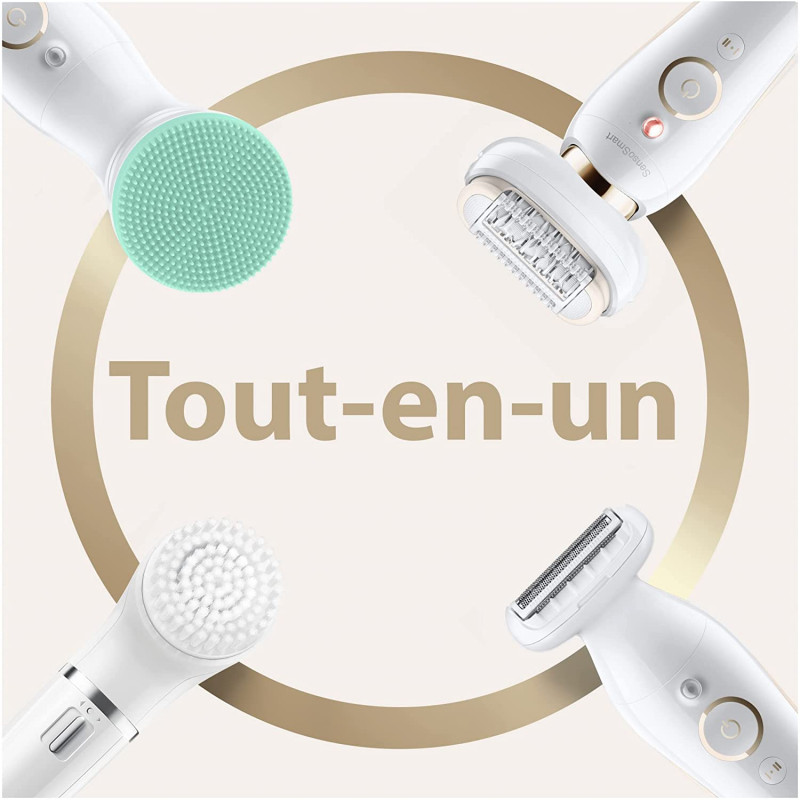 Épilateur BRAUN SERIE 9 3D SES9300 – Technologie SensoSmart – Technologie Micro Grip des pincettes – 2 Vitesses + lumière Smartlight – Tête d’épilation 40% plus large – Lavable / Tête Flexible 3D – Charge 1h pour 50min autonomie – Tête rasoir + Accessoire Tondeuse – Épilateur de visage avec brosse et massage de visage – Accessoire de contact avec la peau – Tête de massage – Couleur : Blanc .