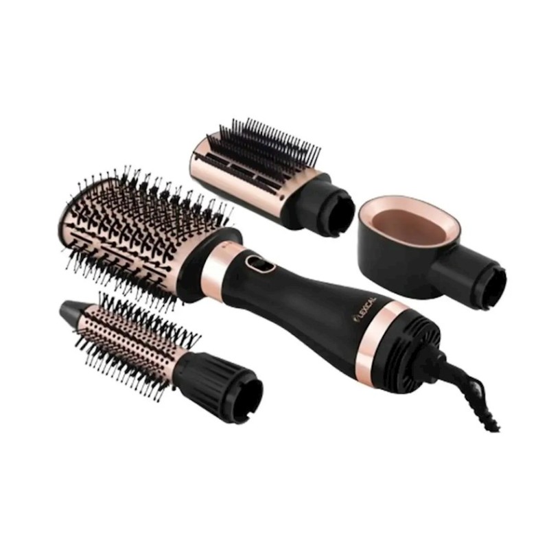 Marque : Lexical – Modèle : LAS-5204 – Fonctions : Séchage, lissage, brushing, bouclage – Puissance : 1000W – Matériau : Plastique haute qualité – Poignée pliable : Non – Longueur du câble : 1,8 m – Câble rotatif : Oui – Anneau de suspension : Oui – Accessoires inclus : – Brosse ronde volumisante – Brosse fine – Brosse lissante – Concentrateur – Couleur : Noir et rose gold – Garantie :12 Mois
