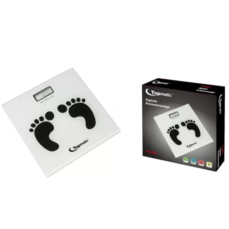 Pèse Personne Électronique Topmatic PS400-B – Alimentation Pile: AAA 1.5V – Poids maximum: 180kg – affichage: LCD – Haute qualité – Couleur : Blanc – Garantie 1 an