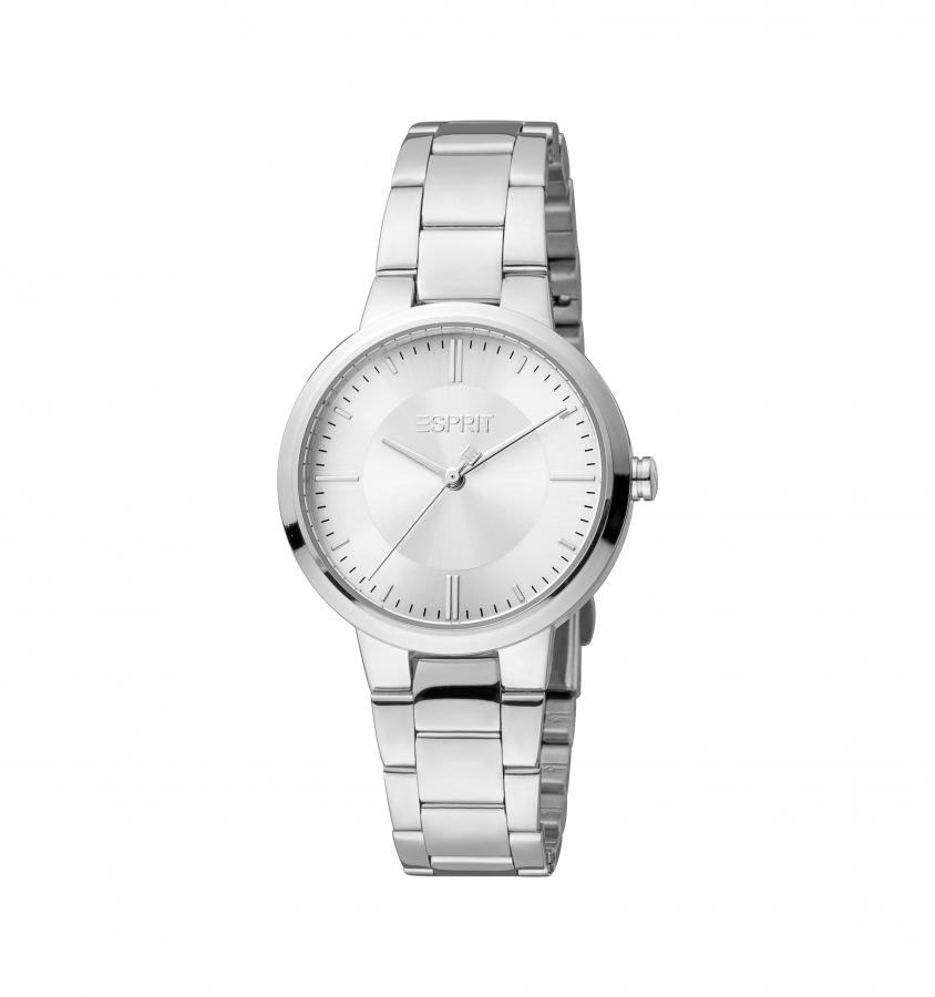 Montre ESPRIT Pour Femme Style Moderne avec bracelet en Acier inoxydable couleur Argent et un fond Argent dans un boitier Rond.