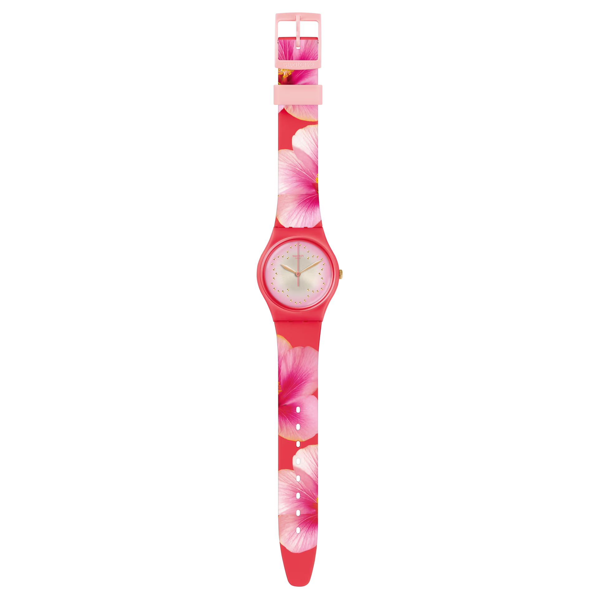 Montre SWATCH Pour Femme Style Moderne avec bracelet en Silicon couleur Rose et un fond Rose dans un boitier Rond. En savoir plus sur SWATCH Swatch surmonta la crise et relança l’industrie horlogère suisse. Au milieu des années septante, l’industrie horlogère suisse connut sa crise la plus grave. En 1979, la concurrence japonaise fut technologiquement neutralisée grâce au lancement de la « Delirium », la montre-bracelet la plus plate au monde comportant un nombre limité de pièces. Mais l’évènement déterminant fut la création de SMH (Société de Microélectronique et d’Horlogerie SA) qui mit un terme à la crise avec la Swatch, une fine montre plastique comptant seulement 51 pièces (au lieu des traditionnelles 91 voire plus), offrant une qualité supérieure à un prix très abordable. Les ventes débutèrent en 1983. Dès ses débuts, couronnée de succès, cette montre a valu au Swatch Group, la société mère, sa position de leader mondial. Au fil des années, de nombreux produits tels que la montre Irony (métallique), la SKIN Chrono (le chronographe le plus fin au monde), la Snowpass (équipée d’une puce ouvrant les portes de nombreuses stations de ski de par le monde) et la Beat (première montre indiquant le Temps Internet) sont venus enrichir la gamme initiale. Swatch a su prouver son avance et ses capacités techniques exceptionnelles dans les domaines de la science et de la technologie en tant que Chronométreur officiel de plusieurs Jeux Olympiques et championnats de monde de ski et snow-board.BIJOUTERIE CHICHKHANE EST UN REVENDEUR AGREE PAR LA MARQUE SWATCH
