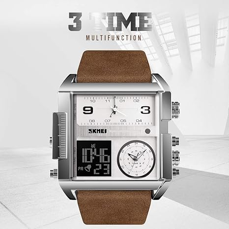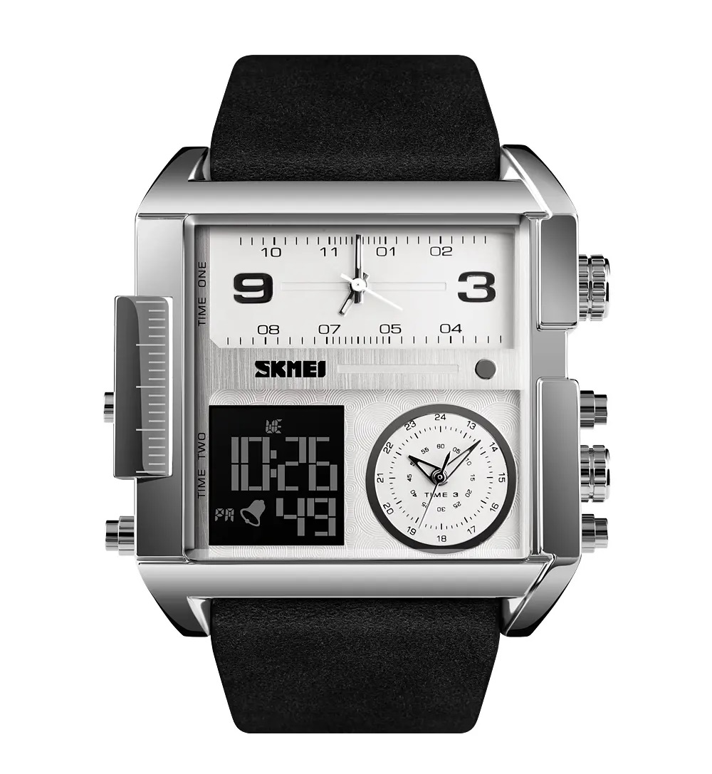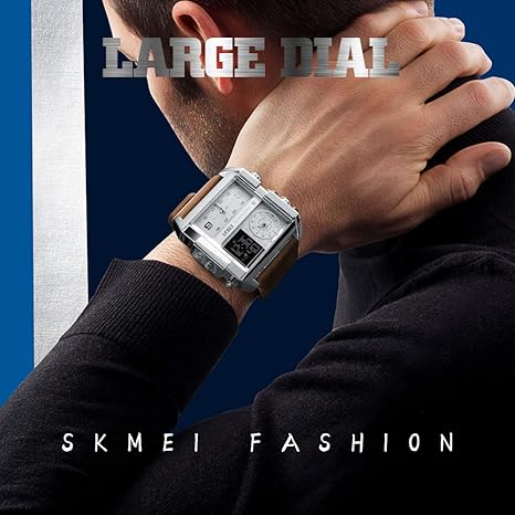 Montre de sport numérique pour avec grand cadran LED carré et affichage analogique Skmei