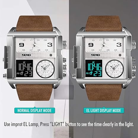 - Design super cool : cadran unique avec triple affichage de l’heure avec chronomètre, alarme et date, grand cadran LED avec bracelet en cuir classique, simple et grand, expressif de votre goût extraordinaire