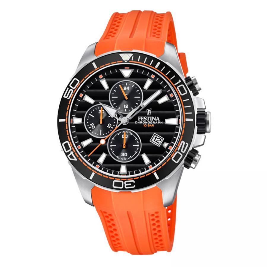 Description Montre FESTINA Pour Homme Style Moderne avec bracelet en Silicon couleur Orange et un fond Noire dans un boitier Rond. En savoir plus sur FESTINALes montres de marque, comme celle de Festina, font de mieux en mieux d’émules. Pour certains même, elles sont classées parmi les objets de culte et de collection. Acquérir une pièce d’exception n’est pas une mince affaire. Parfois, cela relève même de l’exploit. Bijouterie-chichkhane.com, une boutique en ligne œuvrant dans la vente de montre de qualité, peut aider les acheteurs. Il présente un large choix de garde-temps Festina.Opter pour FestinaUne personne qui sait reconnaître les bonnes choses n’hésitera pas à opter pour une montre Festina. Chaque article de la marque détient une particularité qui le distingue des autres. Ce sont des produits raffinés et techniques conçus par des professionnels expérimentés. Dotés d’un mouvement automatique, chronographe ou non, à fonctionnalités particulières ou non, les garde-temps Festina sont parmi les plus convoités à travers le monde. Reconnus partout, ils sont destinés à ravir tous les amateurs d’accessoires de mode.Pour un achat de montre Festina, lequel choisir ?Le choix revient à celui qui décide de s’en procurer. Néanmoins, Festina affiche 7 gammes parmi lesquelles il est possible de choisir. Les femmes n’auront que l’embarras du choix entre les pièces des collections Classiques Femme et Mode Femme. Les hommes peuvent sélectionner un article des gammes Gousset Festina, Chrono Homme, et Classique Homme. Les enfants et les sportifs ne sont pas en reste, la collection Junior convient aux petits et les modèles Tour de France sont parfaits pour les athlètes. Il est évident que chacun trouvera le produit de son désir Bijouterie-chichkhane.comExcellent rapport qualité-prixLa qualité des montres Festina n’est plus à dire, elle est reconnue partout. Acquérir de belles pièces coûte souvent cher.