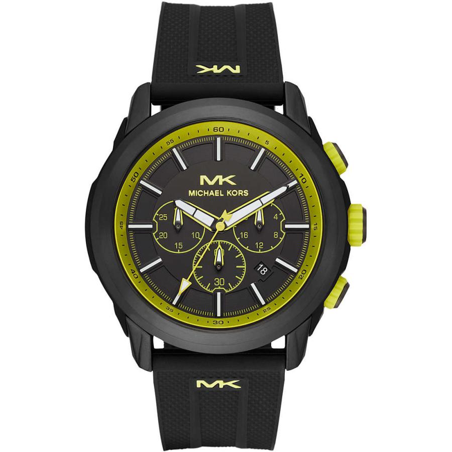 Montre MICHAEL.KORS Pour Homme Style Sport avec bracelet en Silicon couleur Noire et un fond Noire dans un boitier Rond.