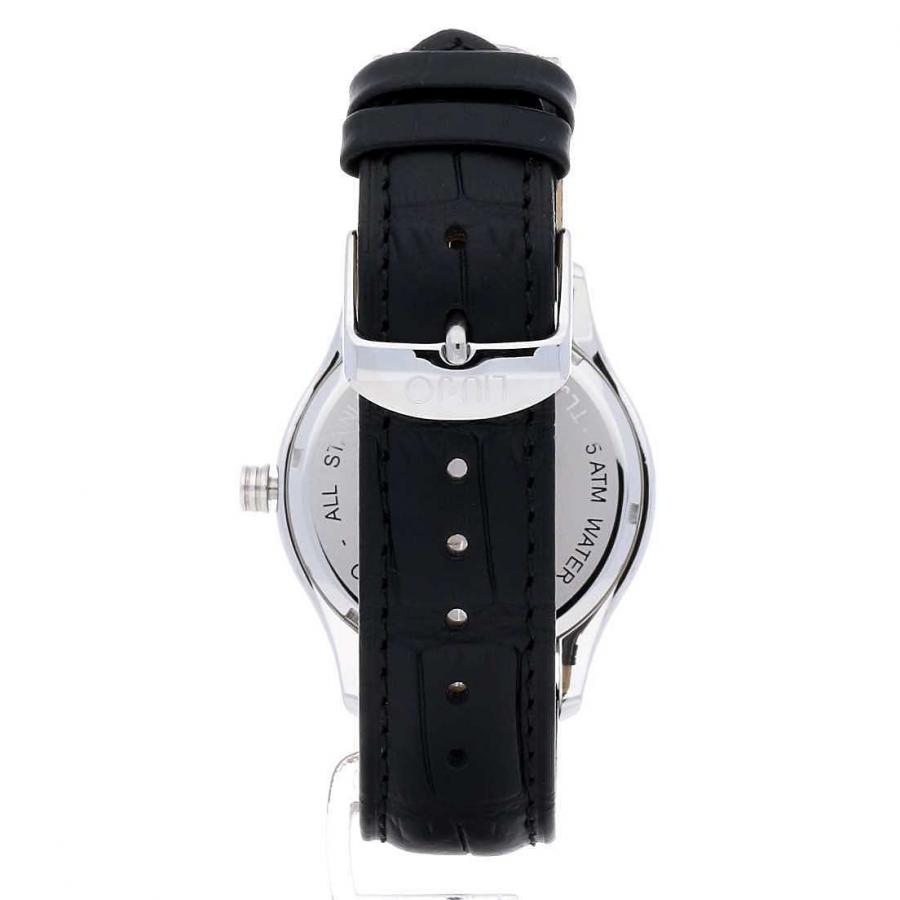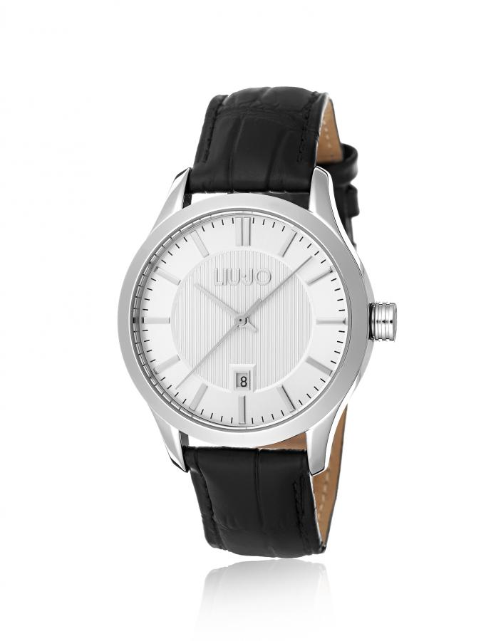 Montre LIU.JO Pour Homme Style Moderne avec bracelet en Cuir couleur Noire et un fond Blanc dans un boitier Rond.