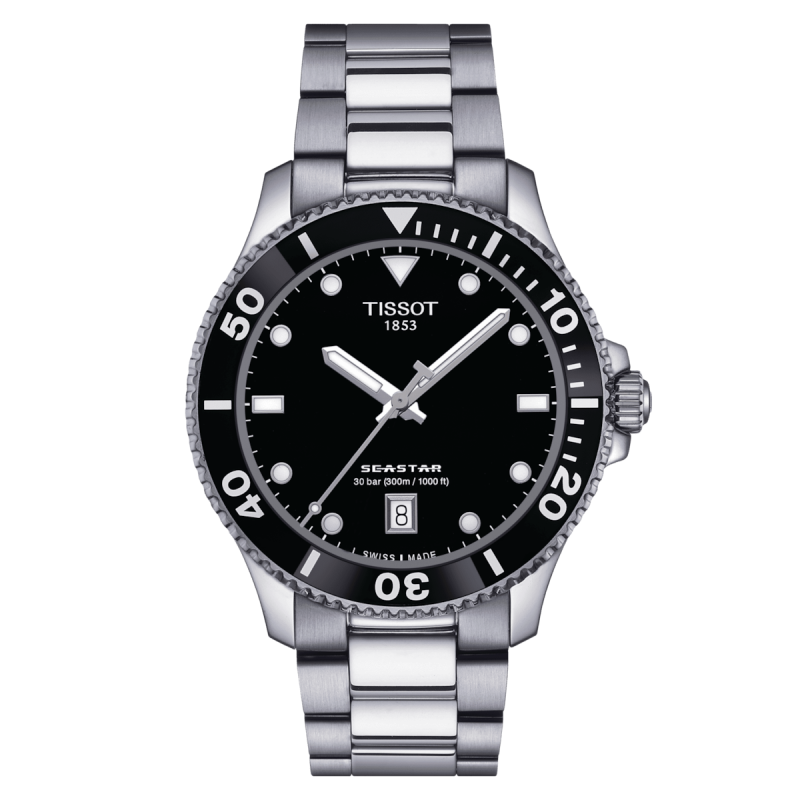 Montre Pour Homme TISSOT SEASTAR 1000 T1204101105100 40MM – Etanche jusqu’à une pression de 30 bar (300 m/1000 ft) – Boîte en acier inoxydable 316L – Couronne et fond de boîte vissés, Lunette tournante sens antihoraire, Lunette en verre minéral – Forme de boîte: Ronde – Epaisseur de boîte: 10 mm – Longueur de boîte: 40 mm – Largeur de boîte: 40 mm – Glace saphir inrayable avec revêtement antireflet des deux côtés de la glace – Mouvement à quartz de fabrication suisse – Calibre: 11 1/2 »’ – Fonction: HMsD – Diamètre calibre: 25.6 mm – Batterie: Pile de type Renata 371 – Couleur de cadran: Noir – Index: Index – Couleur du bracelet: Gris- Matière du bracelet: Acier inoxydable 316L – Boucle: Bracelet interchangeable à ouverture facile, boucle déployante avec sécurité et boutons-poussoirs – Garantie 2 ans