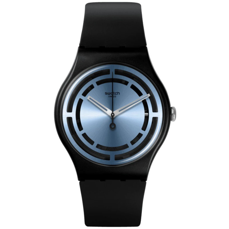 Montre Swatch Circled Lines – Mouvement Quartz – Etanche 30 mètres – Fermoir et Boîtier en Plastique – Bracelet en Silicone – Fermoir Boucle – Couleur Noir – Cadran Bleu – Dimensions 41 x 9.85 x 47.4 mm – Garantie 2 ans