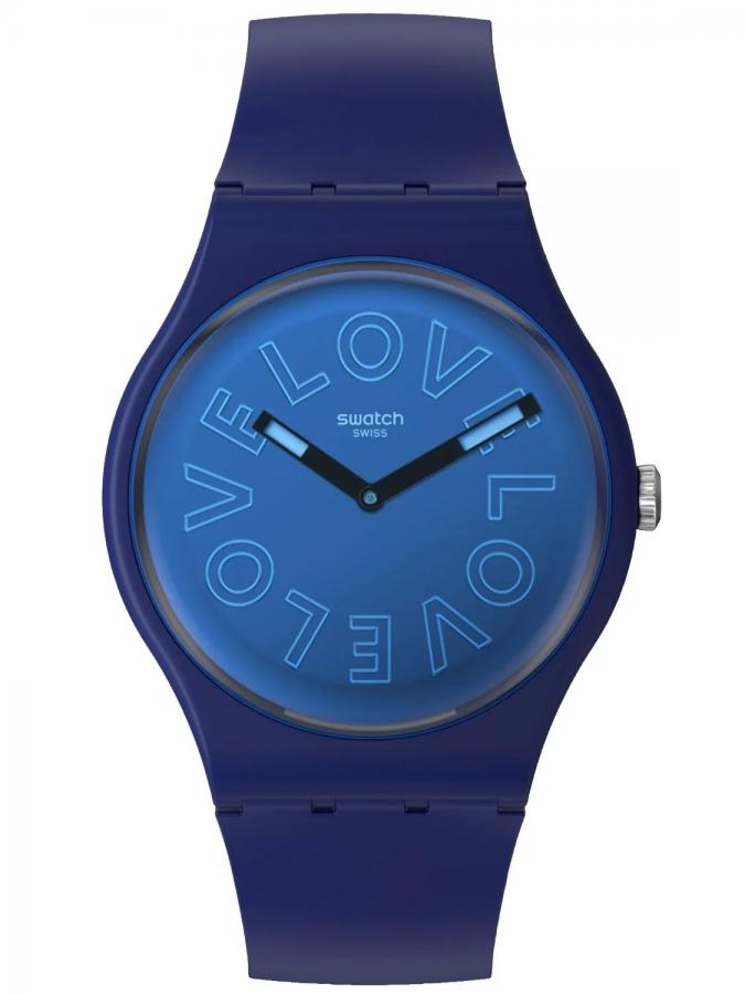 Montre Mixte Swatch Love to Go Around – Mouvement Quartz – Etanche 30 mètres – Bracelet en Silicone – Fermoir Boucle – Couleur Bleu – Cadran Bleu – Dimensions 41 x 9.85 x 47.40 mm – Garantie 2 ans