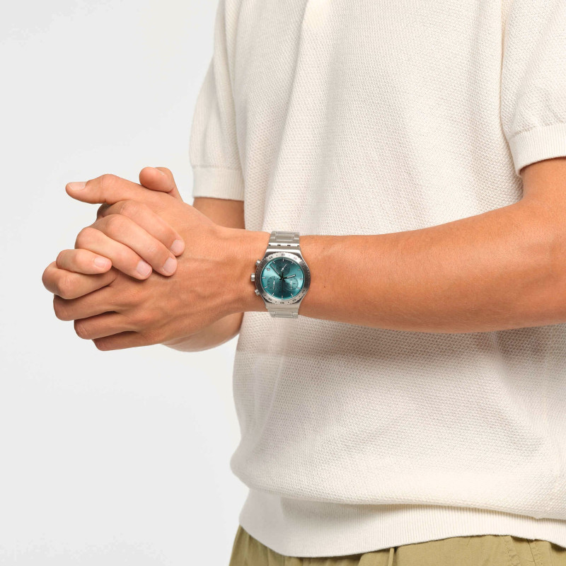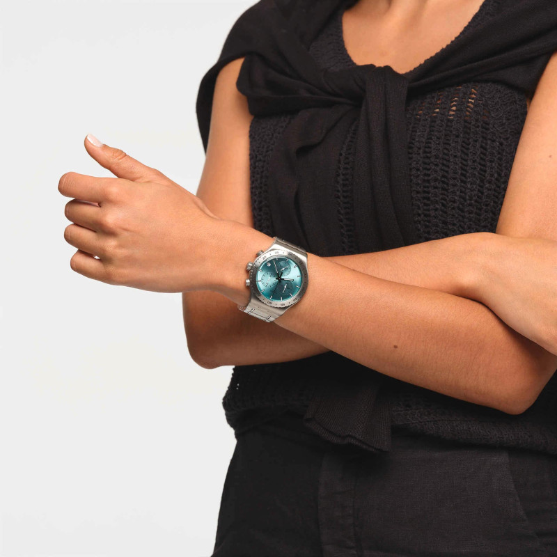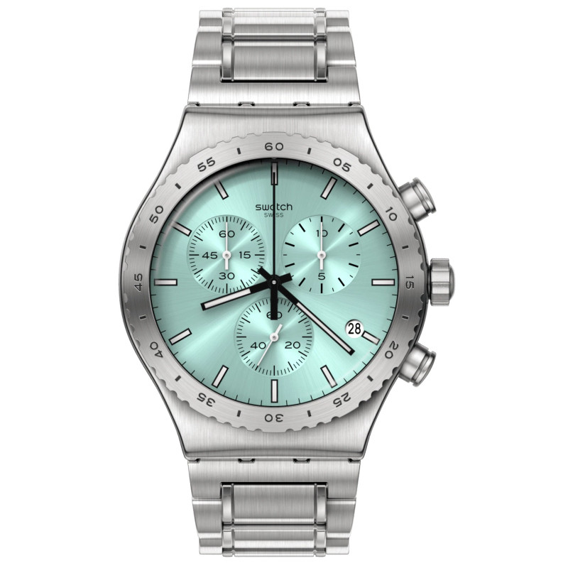 Montre Swatch Energize you YVS498G – Fonctions: Date & Heure, Chronographe – Mouvement Quartz – Étanche 3 Bar – Verre Minéral – Matière du bracelet acier inoxydable Gris – Couleur du cadran Vert – Diamètre: 43 mm – Garantie 2 ans