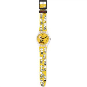 Montre SWATCH Pour Mixte Style Moderne avec bracelet en Silicon couleur Doré/jaune et un fond Jaune dans un boitier Rond. En savoir plus sur SWATCH Swatch surmonta la crise et relança l’industrie horlogère suisse. Au milieu des années septante, l’industrie horlogère suisse connut sa crise la plus grave. En 1979, la concurrence japonaise fut technologiquement neutralisée grâce au lancement de la « Delirium », la montre-bracelet la plus plate au monde comportant un nombre limité de pièces. Mais l’évènement déterminant fut la création de SMH (Société de Microélectronique et d’Horlogerie SA) qui mit un terme à la crise avec la Swatch, une fine montre plastique comptant seulement 51 pièces (au lieu des traditionnelles 91 voire plus), offrant une qualité supérieure à un prix très abordable. Les ventes débutèrent en 1983. Dès ses débuts, couronnée de succès, cette montre a valu au Swatch Group, la société mère, sa position de leader mondial. Au fil des années, de nombreux produits tels que la montre Irony (métallique), la SKIN Chrono (le chronographe le plus fin au monde), la Snowpass (équipée d’une puce ouvrant les portes de nombreuses stations de ski de par le monde) et la Beat (première montre indiquant le Temps Internet) sont venus enrichir la gamme initiale. Swatch a su prouver son avance et ses capacités techniques exceptionnelles dans les domaines de la science et de la technologie en tant que Chronométreur officiel de plusieurs Jeux Olympiques et championnats de monde de ski et snow-board.BIJOUTERIE CHICHKHANE EST UN REVENDEUR AGREE PAR LA MARQUE SWATCH