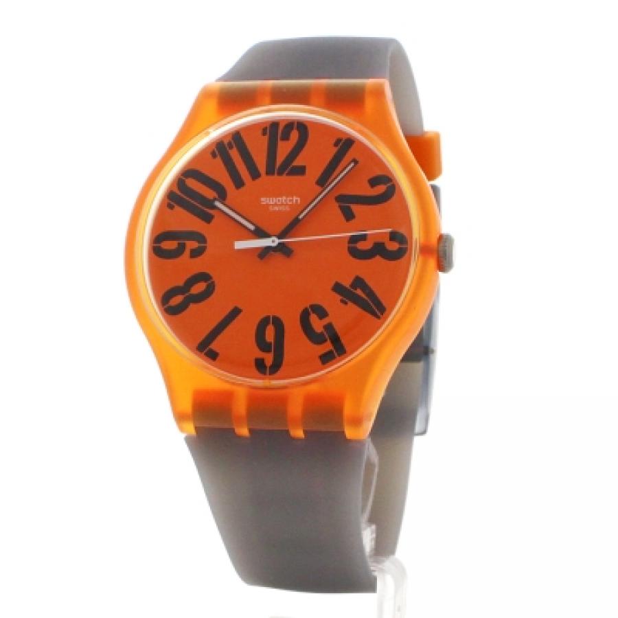 Montre SWATCH Pour Mixte Style Moderne avec bracelet en Silicon couleur Gris et un fond Orange dans un boitier Rond. En savoir plus sur SWATCH Swatch surmonta la crise et relança l’industrie horlogère suisse. Au milieu des années septante, l’industrie horlogère suisse connut sa crise la plus grave. En 1979, la concurrence japonaise fut technologiquement neutralisée grâce au lancement de la « Delirium », la montre-bracelet la plus plate au monde comportant un nombre limité de pièces. Mais l’évènement déterminant fut la création de SMH (Société de Microélectronique et d’Horlogerie SA) qui mit un terme à la crise avec la Swatch, une fine montre plastique comptant seulement 51 pièces (au lieu des traditionnelles 91 voire plus), offrant une qualité supérieure à un prix très abordable. Les ventes débutèrent en 1983. Dès ses débuts, couronnée de succès, cette montre a valu au Swatch Group, la société mère, sa position de leader mondial. Au fil des années, de nombreux produits tels que la montre Irony (métallique), la SKIN Chrono (le chronographe le plus fin au monde), la Snowpass (équipée d’une puce ouvrant les portes de nombreuses stations de ski de par le monde) et la Beat (première montre indiquant le Temps Internet) sont venus enrichir la gamme initiale. Swatch a su prouver son avance et ses capacités techniques exceptionnelles dans les domaines de la science et de la technologie en tant que Chronométreur officiel de plusieurs Jeux Olympiques et championnats de monde de ski et snow-board.BIJOUTERIE CHICHKHANE EST UN REVENDEUR AGREE PAR LA MARQUE SWATCH