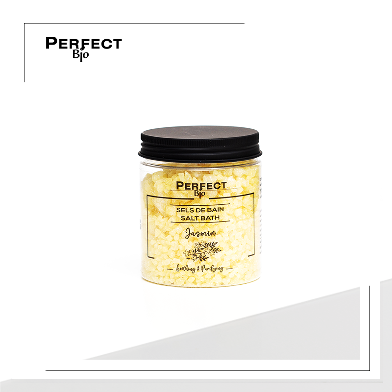 SELS DE BAIN JASMIN Apaisant & purifiant, Il vous suffit de laisser les sels se dissoudre dans l’eau chaude du bain et d’attendre l’effet relaxant et apaisant sur votre corps-300 gr