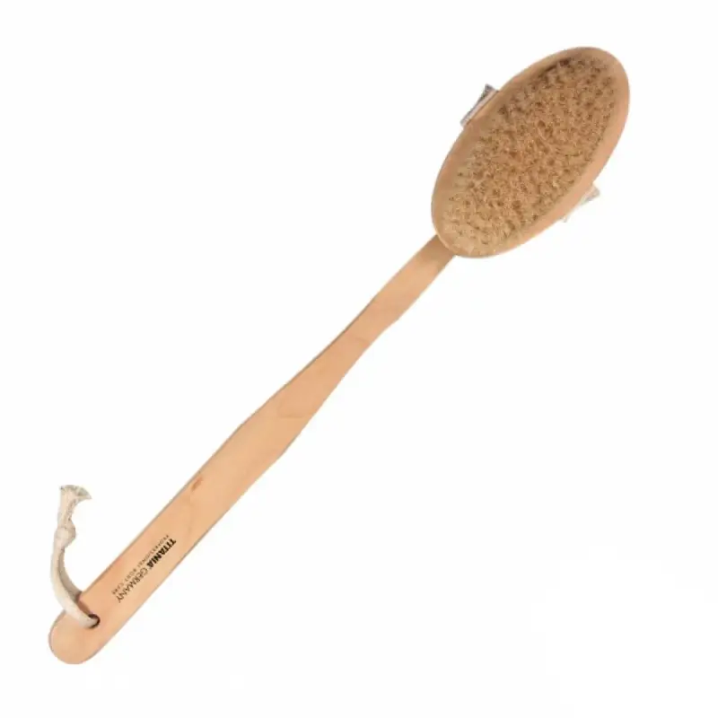 Brosse de bain en bois manche long – La tête est détachée du manche en bois et peut également être utilisée comme brosse à main. – Exfolie et aide à stimuler la microcirculation de la peau en la laissant plus douce et plus lisse. – Le dessus se détache du manche en bois pour pouvoir être utilisé comme une brosse à main. – Tour de tête : Environ : 12,5 cm de long (point le plus long) x 7 cm de large (point le plus large). – La longueur totale de la brosse : environ : 43 cm – Pays d’origine: l’Allemagne.