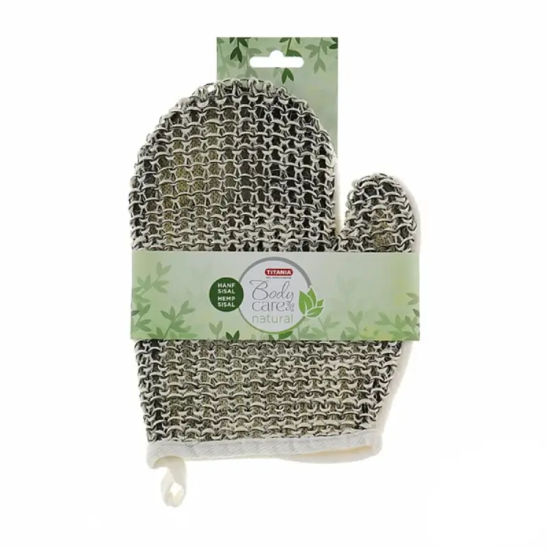 TITANIA Gant de Massage sous forme de gant de sisal (une fibre grossière naturelle obtenue à partir des feuilles d’une plante du genre Agave, utilisée pour fabriquer des débarbouillettes et des brosses) et de chanvre, vert, taille – 18×22 cm, un côté est doux, l’autre est plus rigide, a une action stimulante et grâce à l’effet d’exfoliation douce aide à libérer la peau des cellules mortes. La peau est régénérée, reste lisse, ferme et fraîche de jeunesse.