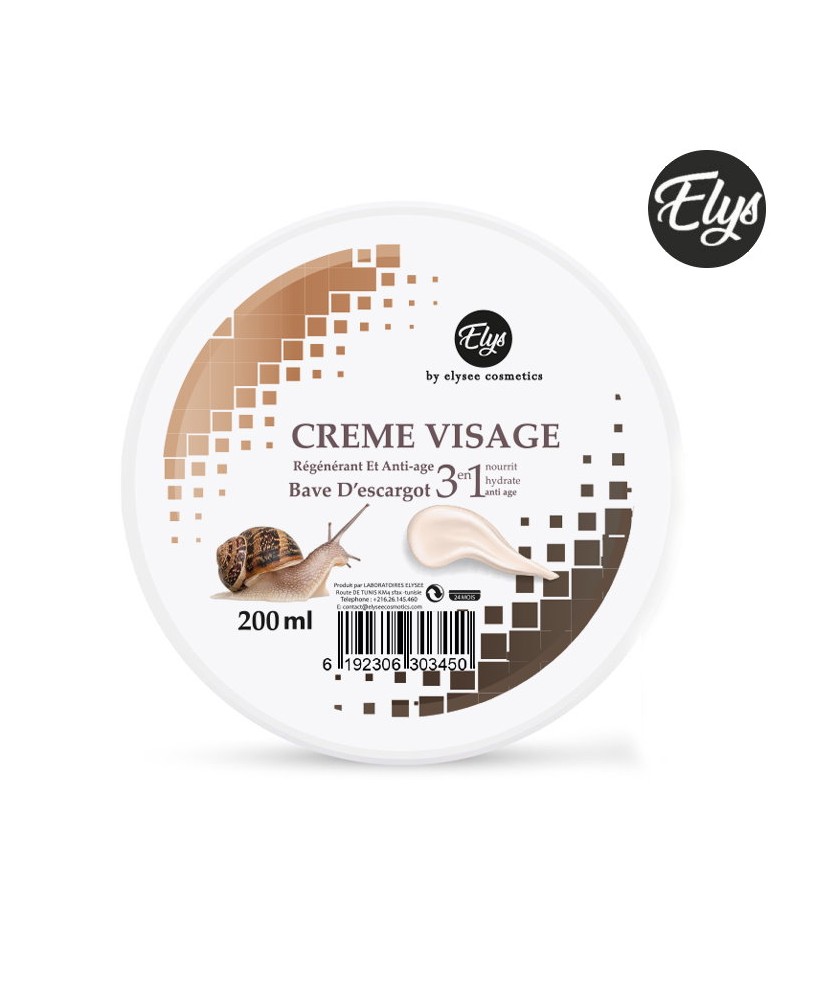 Crème Visage 3IN1 Hydratante – ELYS – Bave d’Escargot – 200 ml