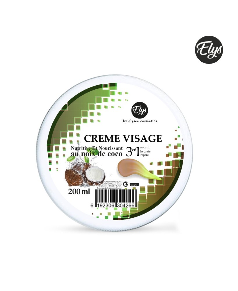 Crème Visage 3IN1 Hydratante – ELYS – Noix de Coco – 200 ml