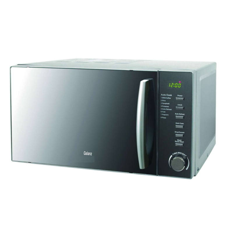 Micro-Onde GALANZ – Volume: 20 Litres – Puissance: 700 Watts – Control digitale facile – 5x Niveaux de contrôle – Afficheur – Poignée de porte élegante – Ouverture facile – Tension/Hz : 230-240v/50hz – Dimensions de la cavité: 198 x 315 x 297 mm – Dimensions de l’unité: 262 x 452 x 345mm – Poids: 10.5Kg – Couleur: Silver – Garantie: 1 an