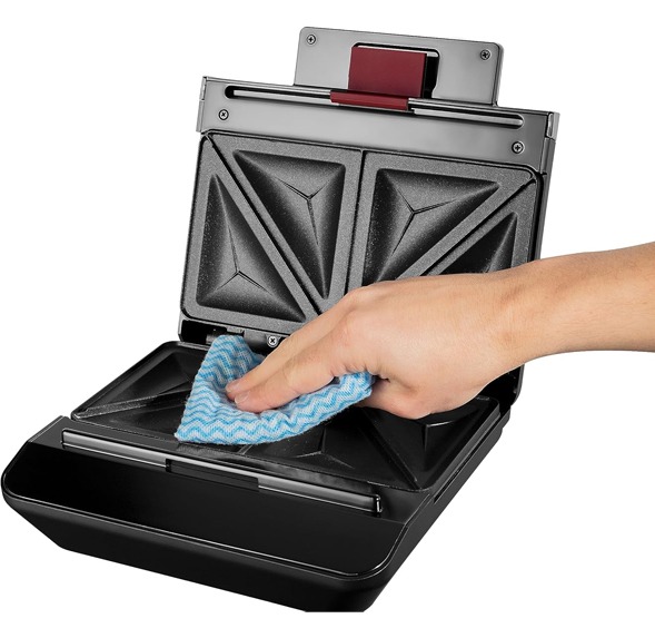 Appareil Croque Monsieur RUSSELL HOBBS – Puissance: 750 Watts – Plaques à sandwichs plus profondes pour contenir plus d’ingrédients – Plaques anti-adhésives pour un nettoyage facile – Coupe en deux sandwichs grillés en même temps – Chauffage rapide – La finition noire mate et l’accent en acier inoxydable – Couleur: Noir – Garantie: 2 ans