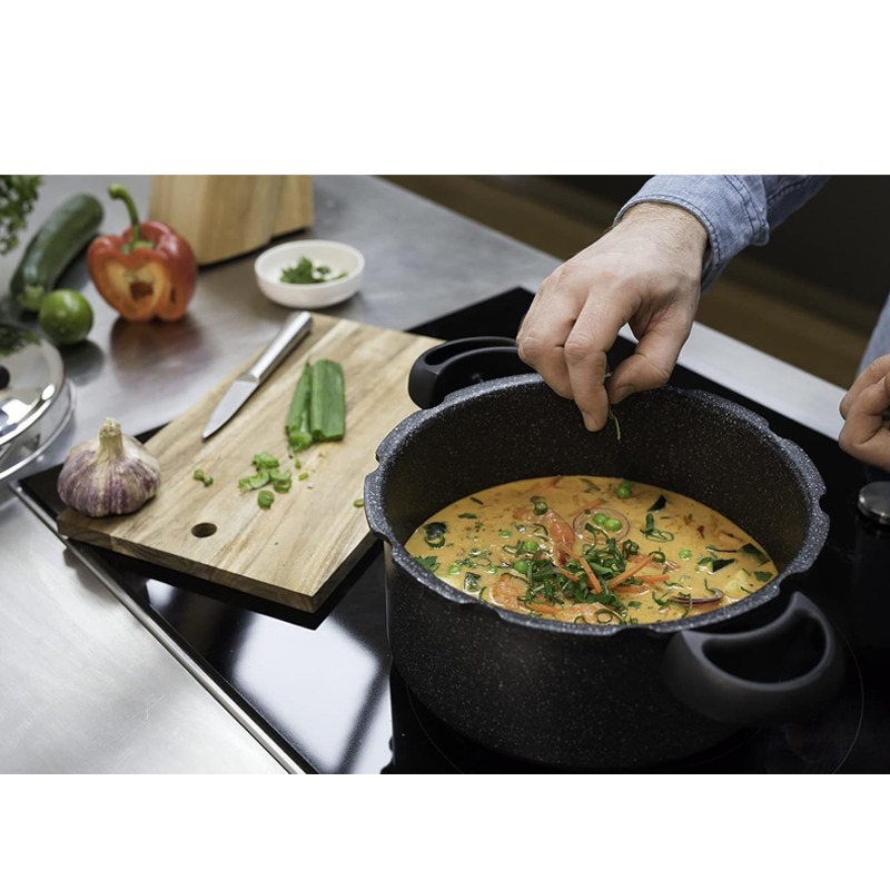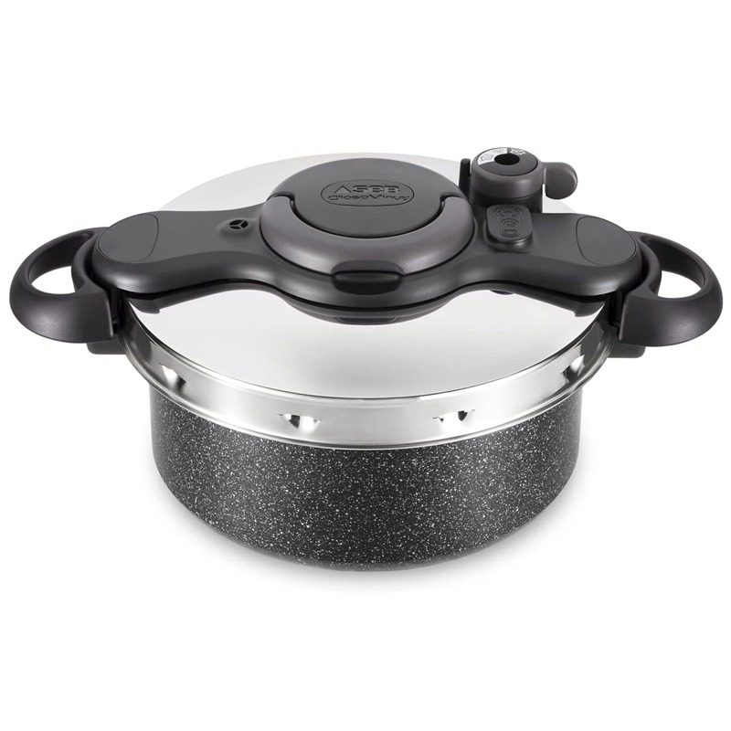 Cocotte 2EN1 SEB ClipsoMinut Ultra Resist – Capacité: 5 Litres – 2 modes de cuisson: Autocuiseur et faitout – Ouverture/fermeture facile d’une seule main – Revêtement anti-adhésif – Matière en pierre – Avec minuterie – Ultra resistant et facile à nettoyer – Système de verrouillage pour une cuisson à la vapeur sécurisée – Compatible tous feux dont induction et lave-vaisselle – Couleur: Noir