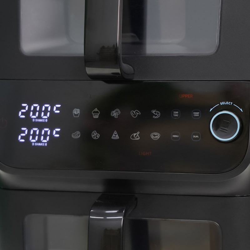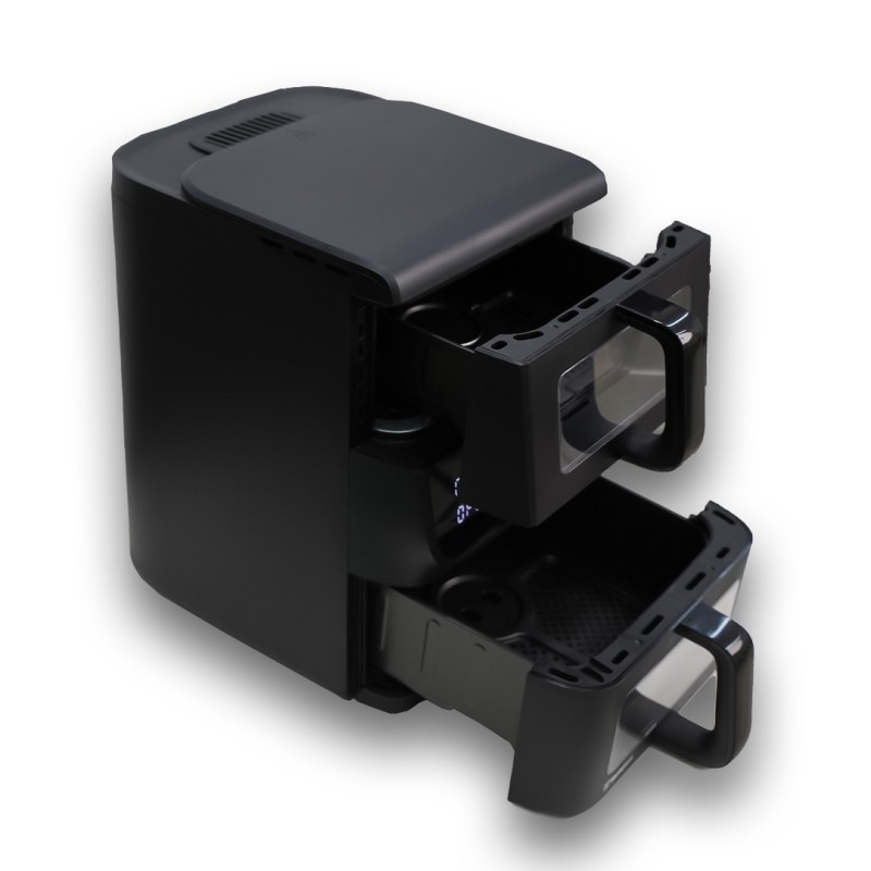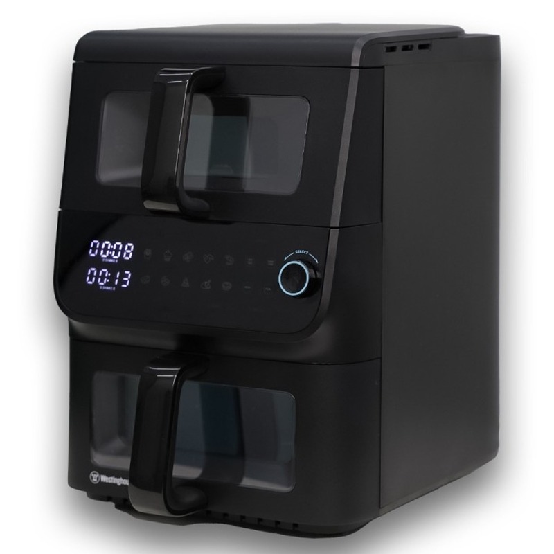 Friteuse Sans Huile Duo WESTINGHOUSE – Puissance: 2000 Watts – Capacité: 10 Litres (6,5 Litres + 3,5 Litres) – Température: Réglable de 80 à 200 °C – Minuterie: 60 minutes – 10 programmes – Fonction Mémoire – Panneau de contrôle tactile digital – Chaleur pulsée – Cuisson rapide et économique – Panier amovible – Couleur: Noir – Garantie: 1an