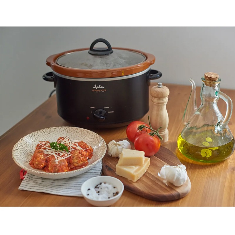 Multi Cuiseur JATA – Puissance: 180 Watts – Capacité: 3.5 litres – 3 niveaux de chaleur – Mijoteuse pour préparer toutes sortes de plats – Bol ovale en céramique en terre cuite – Bol adapté pour une utilisation au four max 250º – Couvercle en verre – Témoin lumineux – Poignées latérales – Nettoyage facile – Tension: 230 V – Couleur: Noir – Garantie: 1an