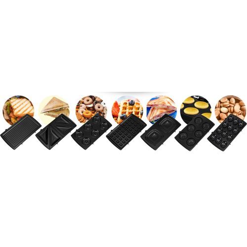 Appareil de Cuisson 7En1 LEXICAL – Puissance: 800 Watts – Pour Panini, Croque Monsieur, Gaufre, Zouza, Madeleine, Maamoul – Plaques amovibles antiadhésives facile à nettoyer – Témoin lumineux – Poignée isolante – Patins anti-dérapants – Boitier résistant à la chaleur – Couleur: Noir – Garantie : 1 an