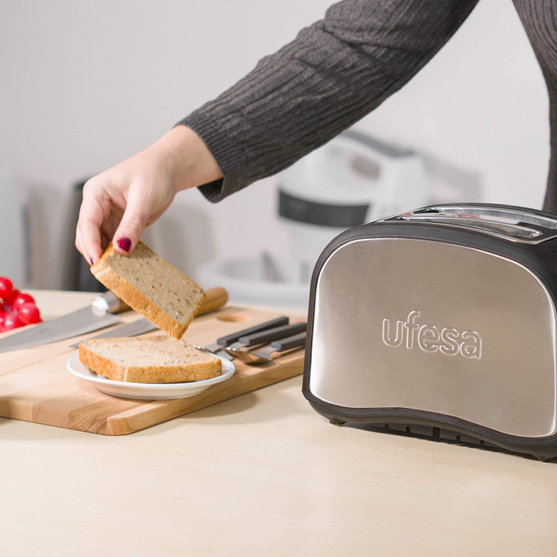 Puissance 800 Watts – 2 fentes pour 2 toasts – Sélecteur électronique de brossage 6 positions – Fonction Dégrivage et Réchauffage – Poids 191 g – Dimensions 30.8 x 19.8 x 16.9 cm – Couleur Inox – Garantie 1 an