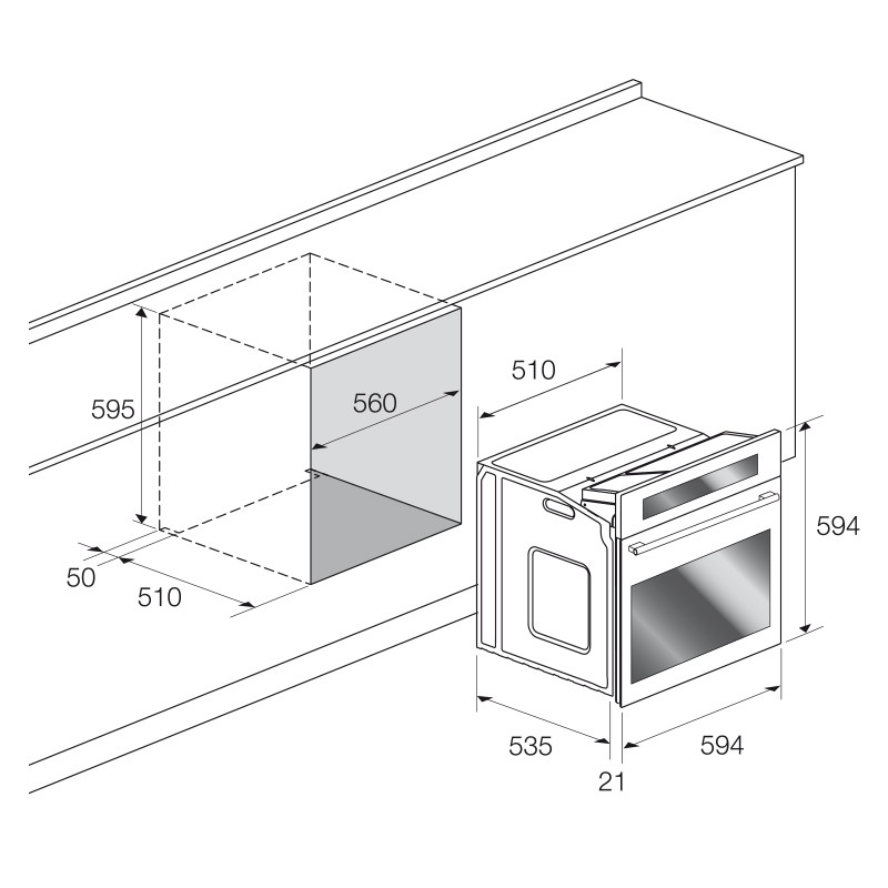 Four Encastrable Électrique FOCUS – Volume: 56 Litres – Largeur: 60 cm – Classe Energétique: B – 6 programmes – Minuterie Mécanique – Chaleur tournante – Boutons – Porte froide – Dimensions: 60 x 60 x 54 cm – Couleur: Noir –Garantie: 2 ans