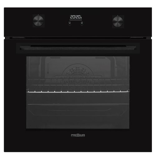 Four Électrique Encastrable Premium – Volume : 65 Litres – Classe énergétique : A – Chaleur Tournante – 7 programmes – Eclairage halogène – Afficheur numérique – Ventilateur de refroidissement – 1 grille chromé – 1 plateau émaillée – Porte avec double vitrage – Autonettoyant – Largeur : 60 cm – Couleur : Noir – Garantie : 1 an