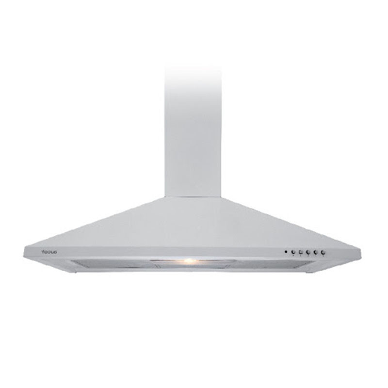 Hotte Focus Pyramidale- Largeur: 90 cm – Nombre de vitesse: 3 – Boutons- Débit: 600 m3/h- Eclairage: lampe 28 W- Filtre aluminium lavable- Filtre anti-odeur en charbon Inclus- Classe énergétique A- Diamètre évacuation: 150 mm – Couleur : Blanc – Garantie: 2 ans
