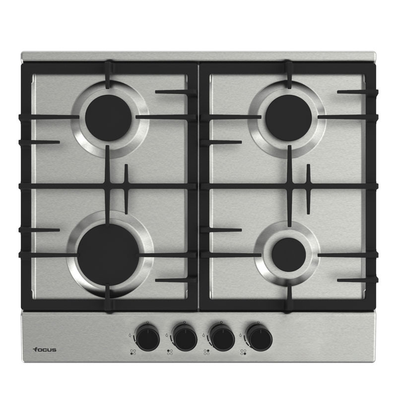 Table de Cuisson Encastrable Focus – Largeur : 60cm – Nombre de bruleurs : 4 Bruleurs à Gaz – Grilles et chapeaux de brûleurs en fonte – Flamme Stabilisé – Allumage automatique – Commandes frontales – Couleur : Noir