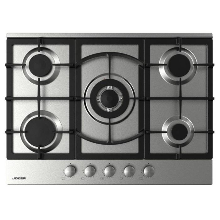 • Inox 70CM • 5 brûleurs à gaz • Brûleur 1: 1 KW • Brûleur 2: 1.75 KW • Brûleur 3: 3,5 KW • Brûleur 4: 1.75 KW • Flamme stabilisé • Grilles et chapeaux de brûleurs en fonte • Allumage automatique • Commandes frontales • Sécurité gaz sur chaque brûleur thermocouple